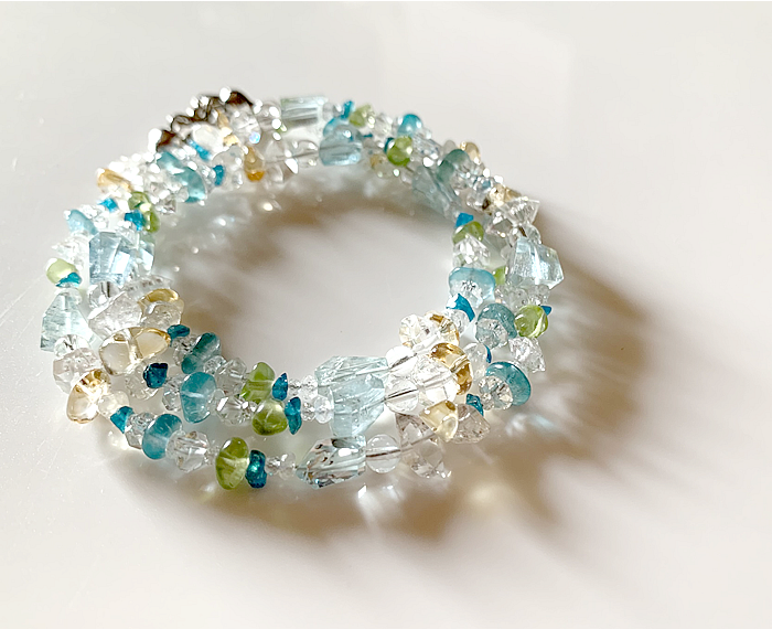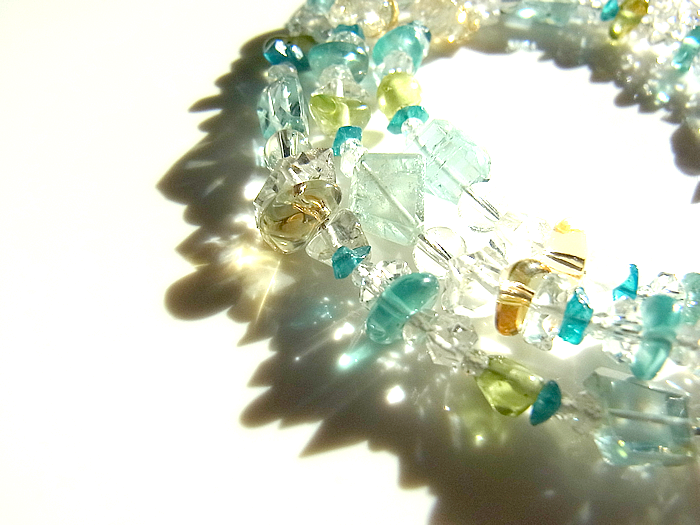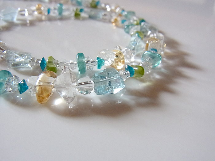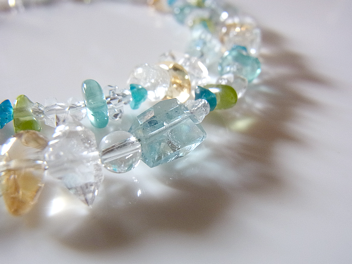 ブラジル産アクアマリンSA・NY産ハーキマーダイヤモンド2種・カンチェンジュンガ(ヒマラヤ)産クリアクォーツ(水晶)・ブラジル産シトリン・ブラジル産クリアクォーツ2種(SUSA+1種)・ブラジル産ブルーアパタイト2種・ペリドット・インド産ブルームーンストーン・ブラジル産クリアトパーズ2種(SUSA+1種)